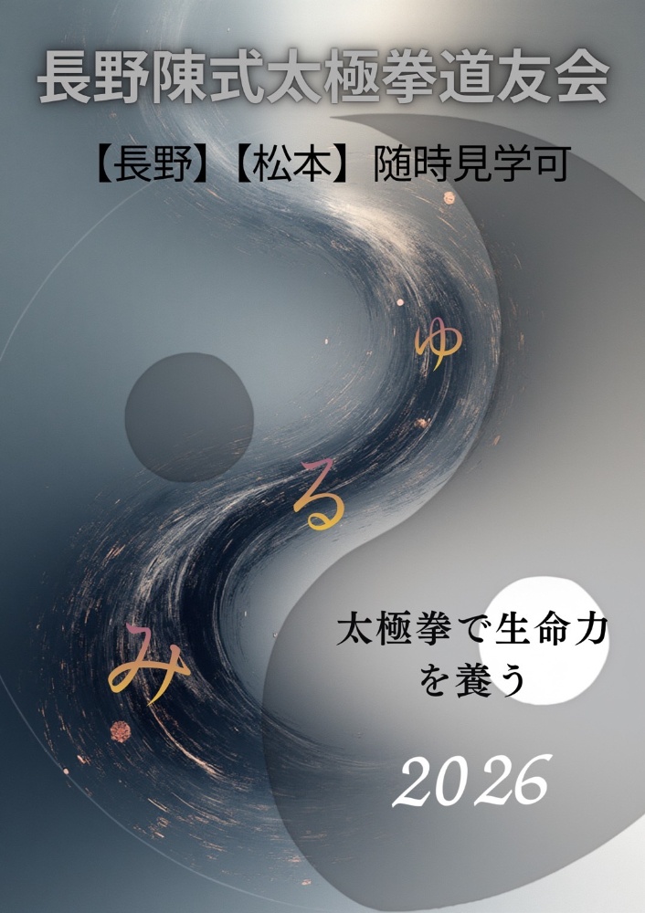 長野陳式太極拳道友会は日本陳式太極拳学会の加盟団体として2009年4月に発足し、陳式太極拳第二十代伝承者・及川真(重道) 老師指導のもと、長野の地で陳式太極拳を基本から一歩一歩学んでいける団体です。